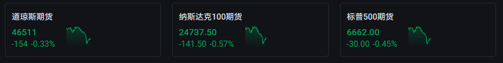 纳斯达克100指数期货跌幅扩大至1%,道指期货跌0.5%,标普500指数期货跌0.7%;