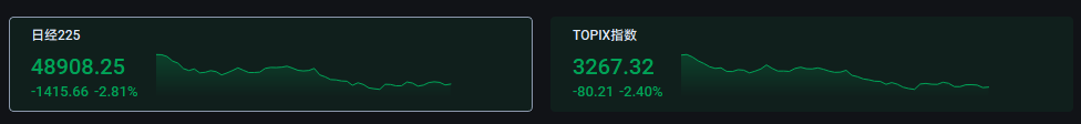 日经225指数一度跌超3%,日本东证TOPIX指数跌2.4%
