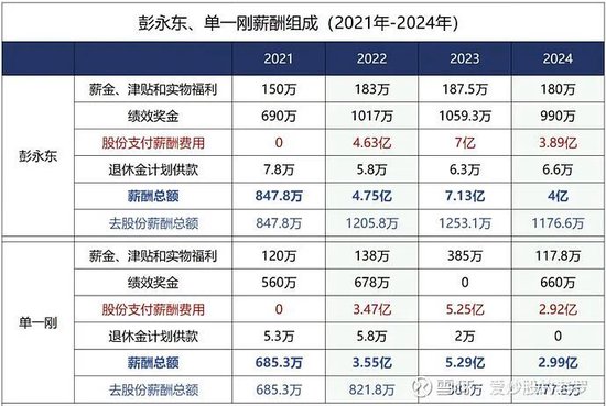 不妨借用网友一张图,看看彭永东等人的薪酬构成: