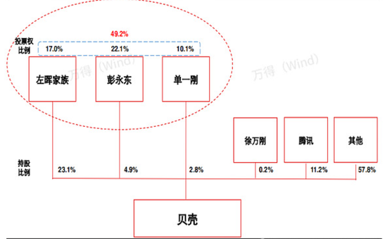 在左晖去世后,左晖家族将贝壳投票权以不可撤销委托的方式,给了彭永东和单一刚控制的百会合伙。